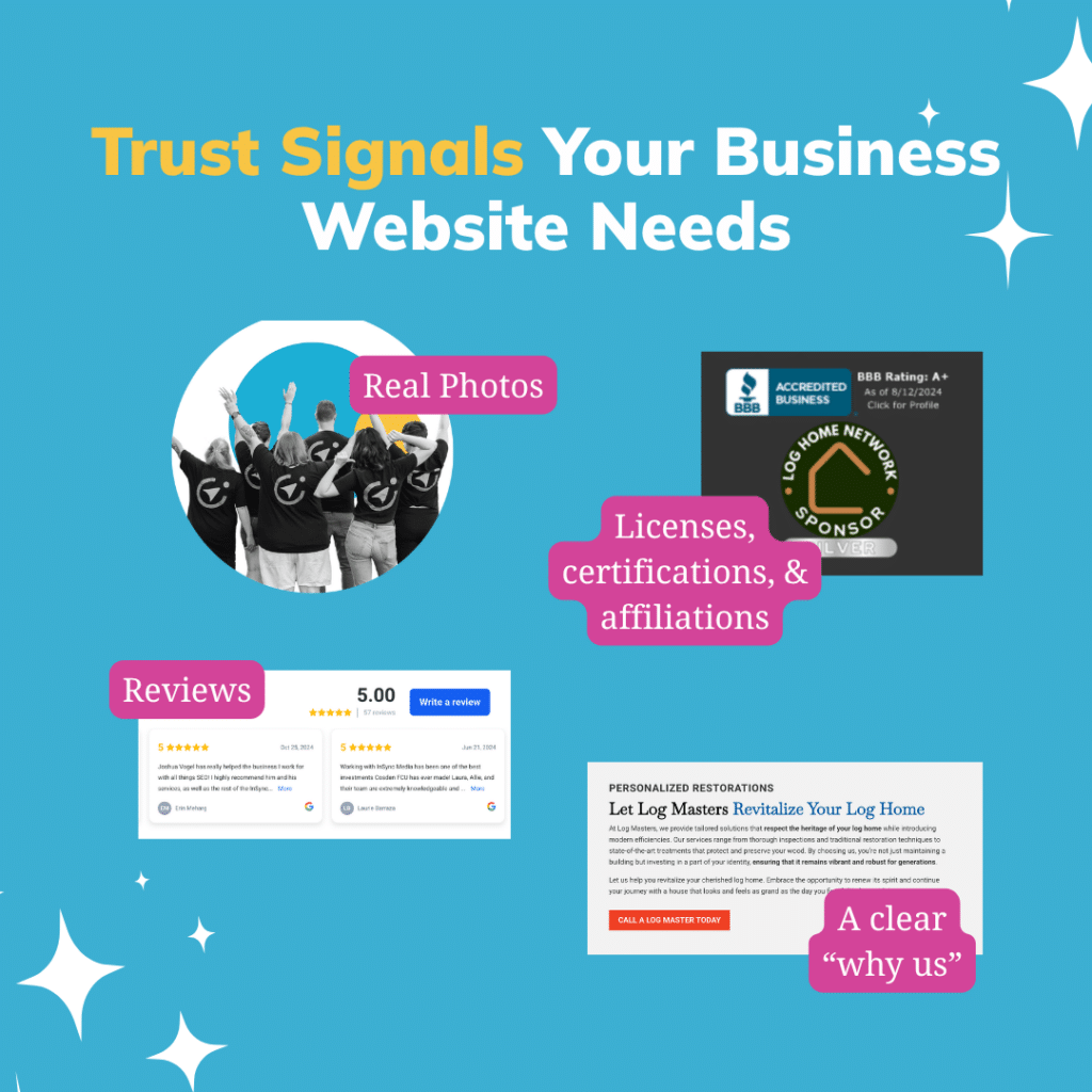 - Reviews from Google, Yelp, or other third-party platforms displayed prominently across your site